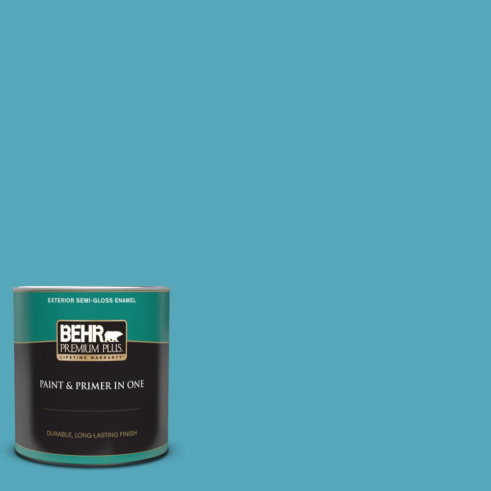 Behr Premium Plus 1 Gal P470 7 The Real Teal Semi Gloss Enamel Exterior Paint And Primer In One 534001 The Home Depot